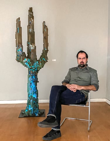 Manuel Lozano’s practice engages with post-natural imaginaries that articulate the shifting tensions between culture and nature. His sculptures advance an anthropologically inflected reading of materials drawn from diverse artistic and industrial traditions, mobilizing them as sites of cultural inscription rather than neutral matter. Through this lens, his work interrogates how contemporary technologies reshape the perception, mediation, and simulation of the everyday environment. Situated within a Latin American context marked by layered material histories and uneven processes of modernization, Lozano’s practice foregrounds the environment not as a given, but as a culturally produced and technologically conditioned construct.